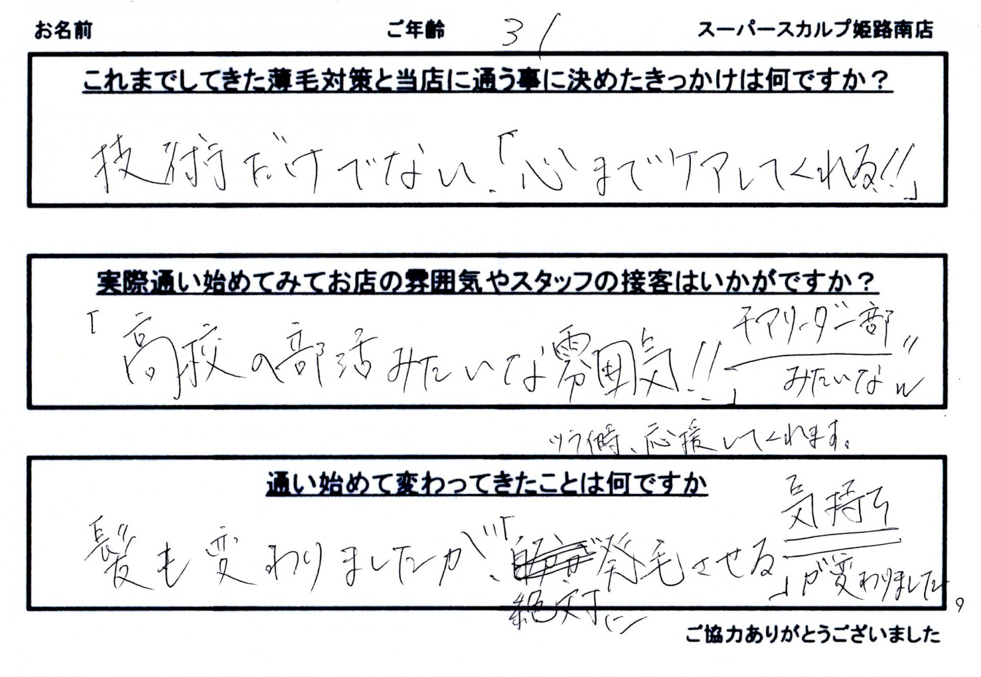 「毛ってほんまに生えるんですね?始めて良かったです」と嬉しいお言葉を下さいました