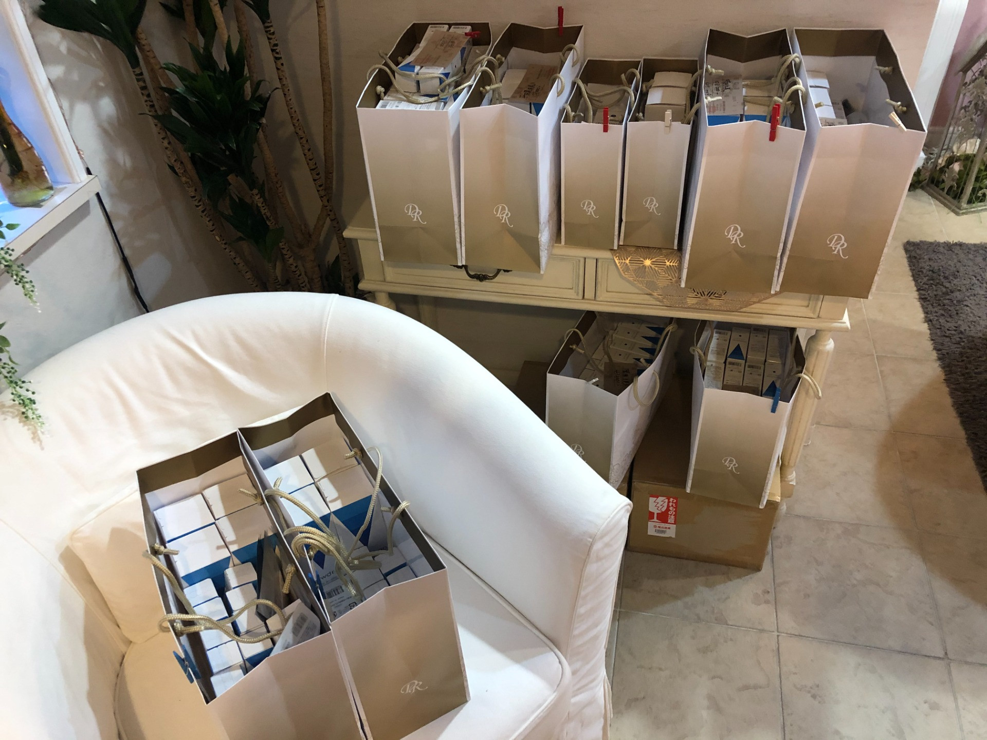 お知らせ直後より他のキャンペーンはひとまず置いといて、「SnowDrop」の確保に走られた利口なお客様のご注文でサロン内の控室である在庫棚が3密になりあふれ出た商品の置き場にこまり果てているの図。