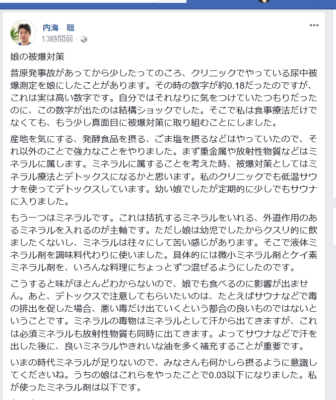 以下はオーナーが3年前にケイ素への価値に気が付くきっかけとなったある内科医のFacebookの書き込みだそうです