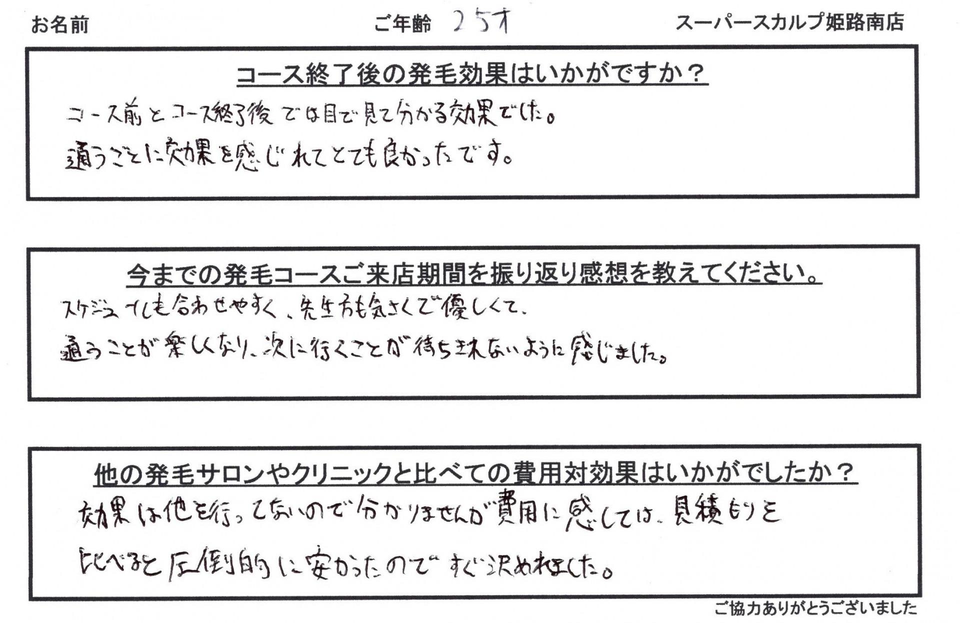 通うごとに効果を感じれてとても良かったです。