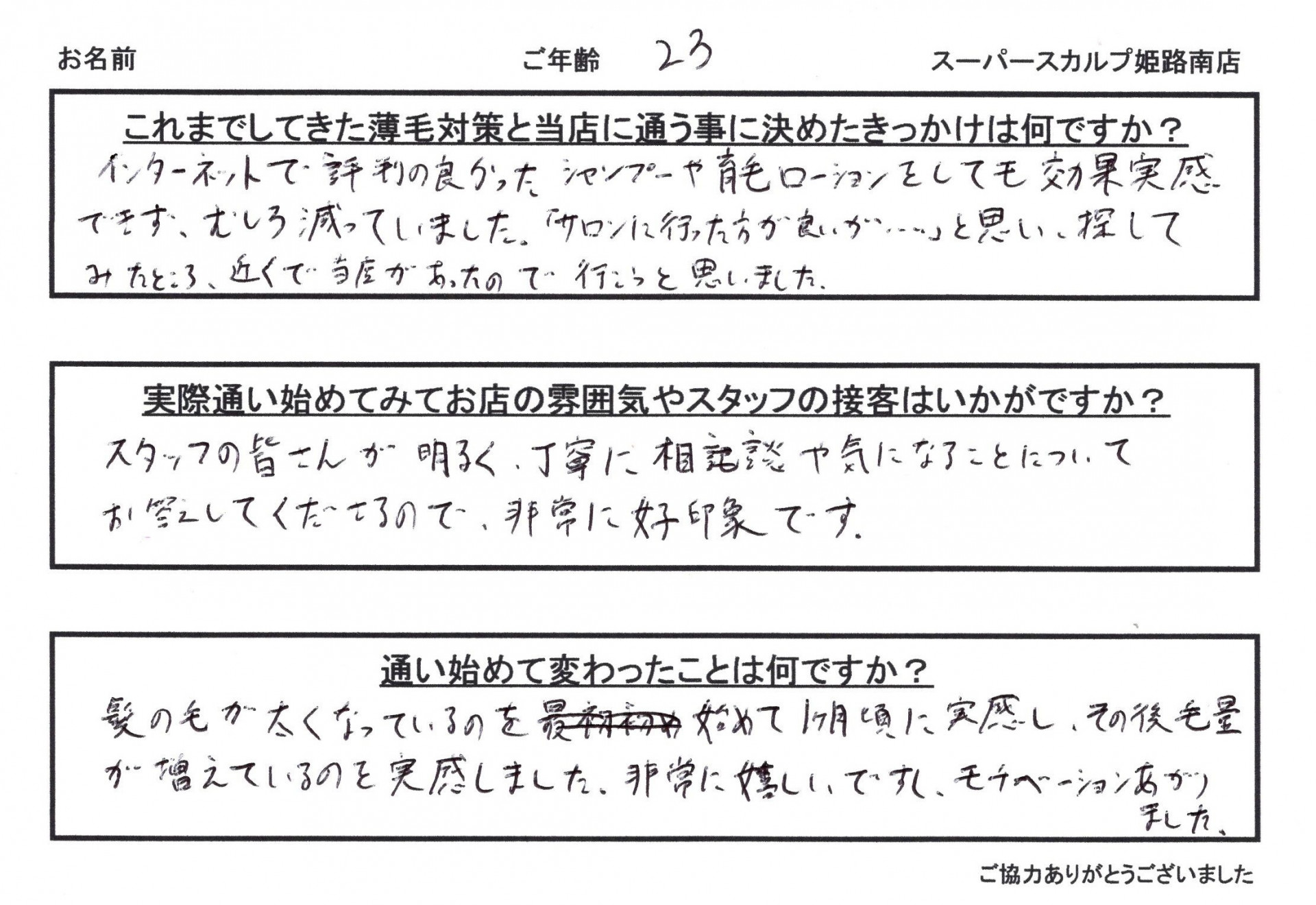 これまでしてきた薄毛対策と当店に通う事に決めたきっかけは何ですか?