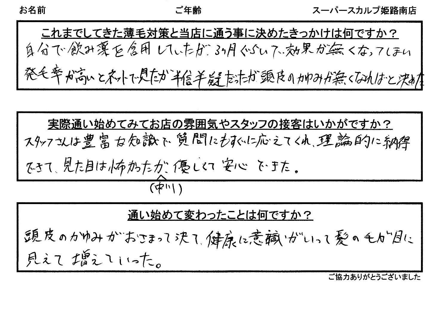 アンケートを書いて頂いて