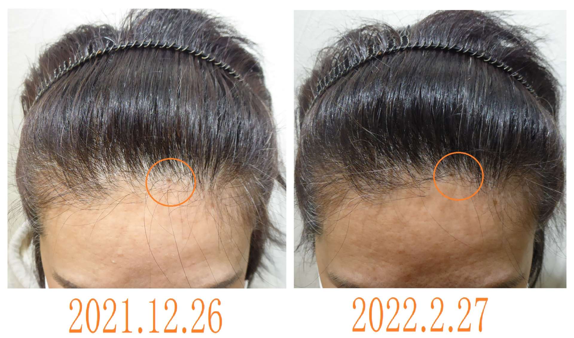 ハッキリ見えていた黒子が生え際の中に隠れています・・・