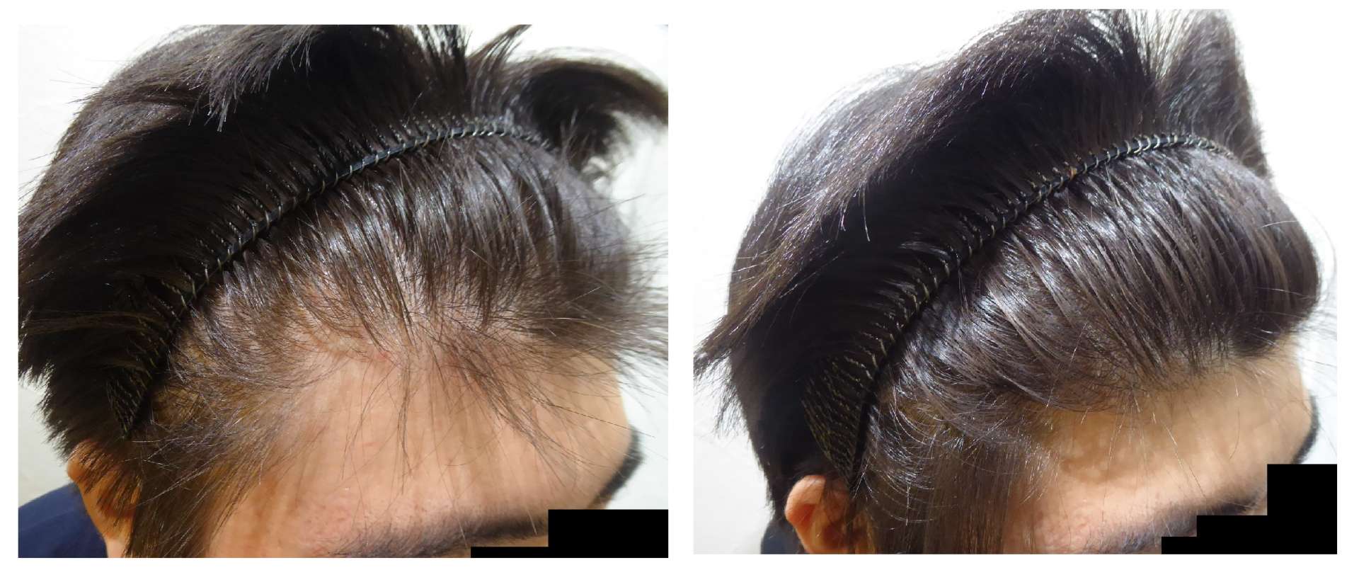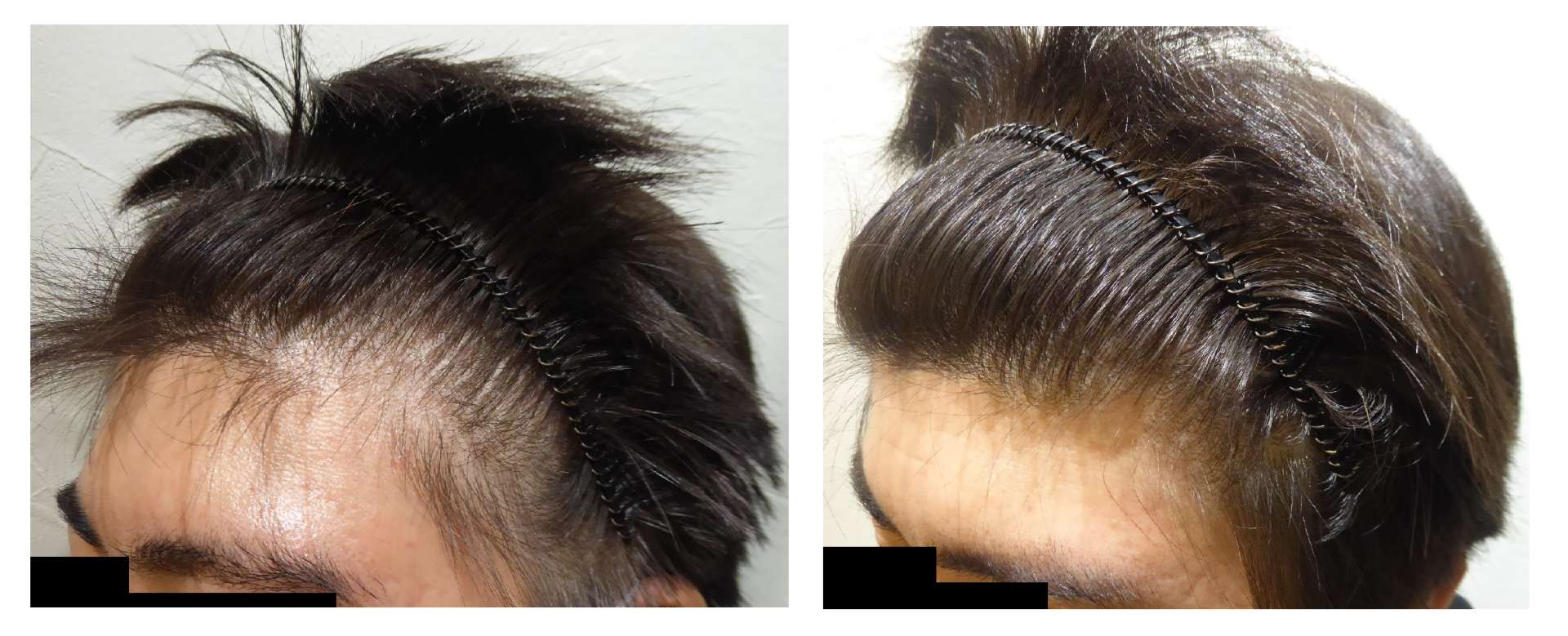 性別⇒男性 年齢⇒20代~ 症状⇒・前頭部から頭頂部にかけて髪の毛が薄くなる