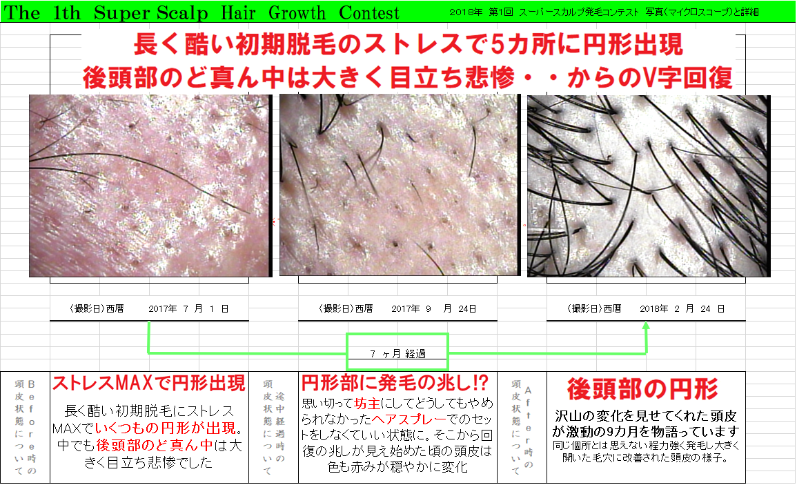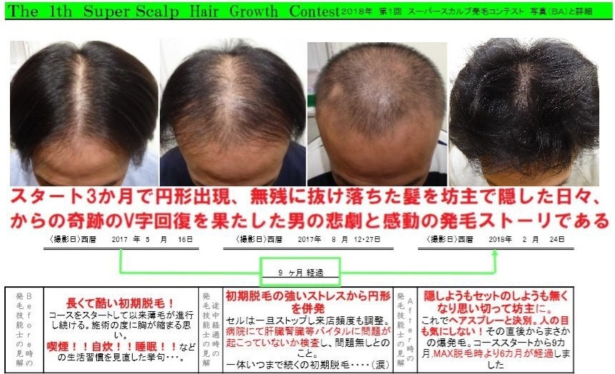 『ちゃんと言われた通りケアしてるし、家で自炊もしている。やのに抜け毛が止まらへんで』そう言われ続け発毛の兆候どころか初期脱毛がどんどん進行し、しまいには後頭部やサイド、生え際まで大きな円形が出来てしまいました。