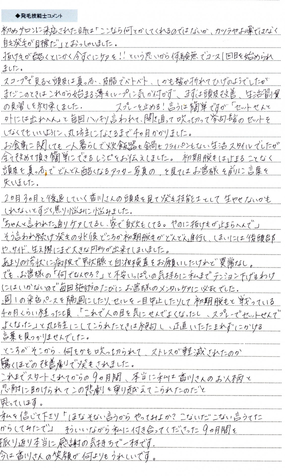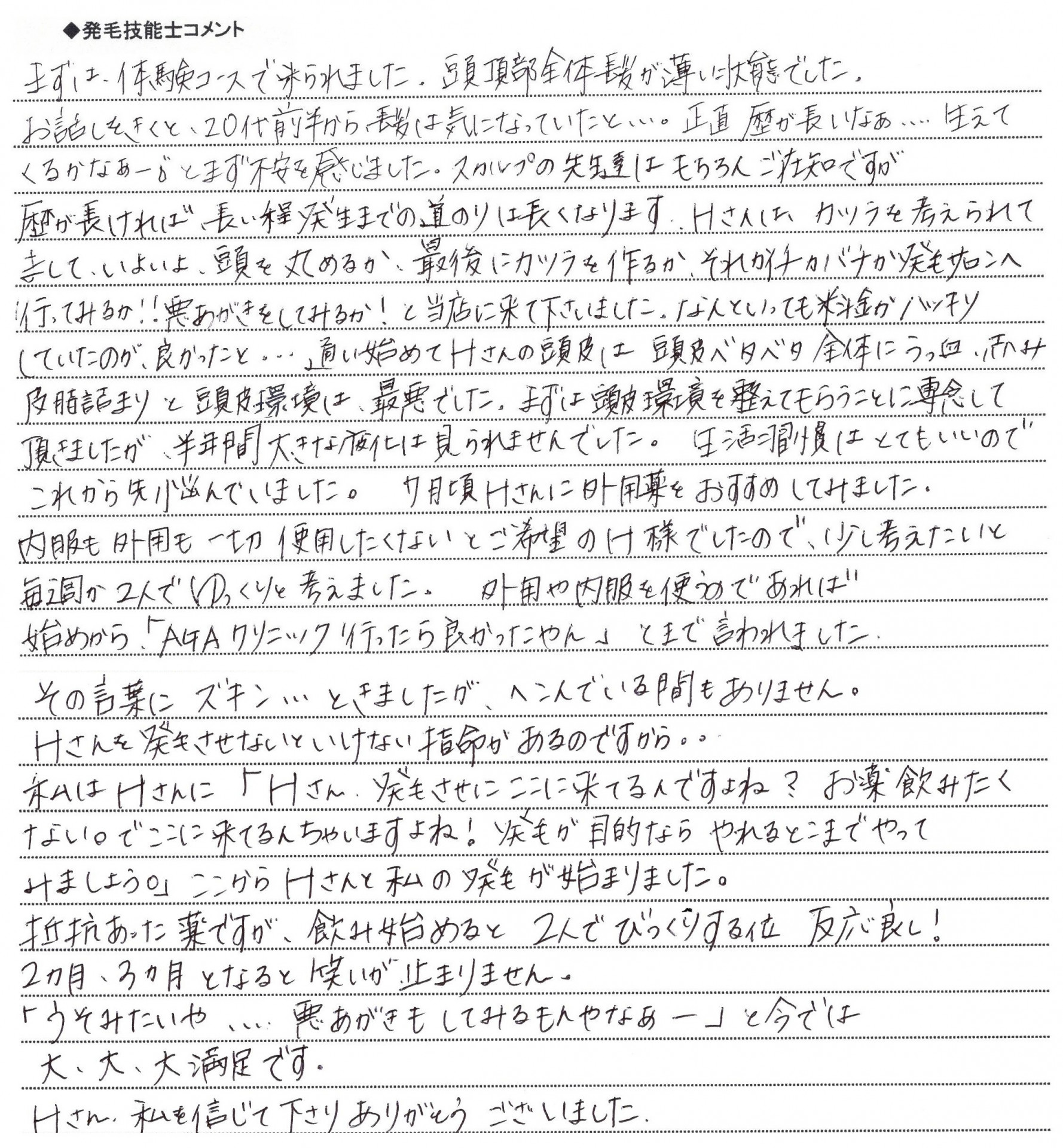 担当発毛技能士からのコメント